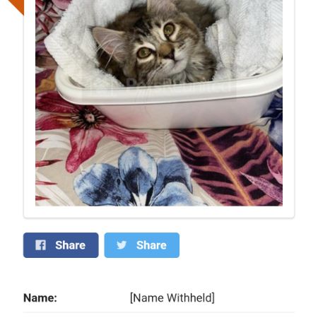The following found pets are matches to this lost cat, these were listed on the lost cat register after this pet has gone missing.