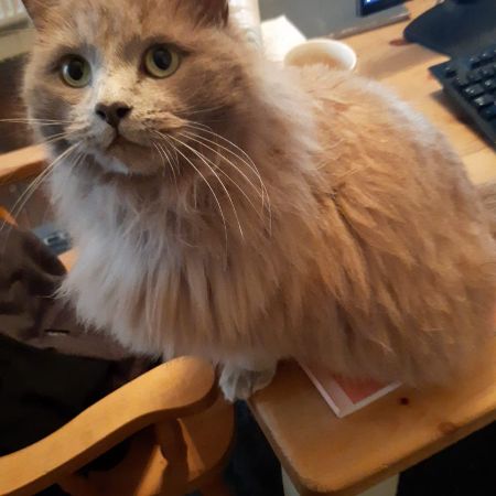 Eleanor is a Ragdoll cross neutered female. She has yellowy/green eyes.