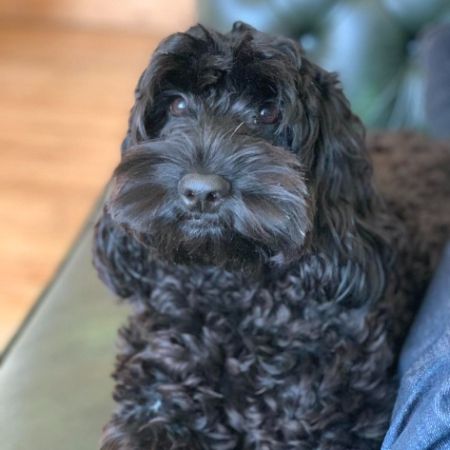 She has black curly fur, and is a medium sized cockapoo. She recently had a haircut. She is timid and can run very fast.