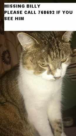Report your missing cat on our Cat Registers for free and we will do a pet match to display any cats which match in the area. You can also create and print your lost cat poster. Report a missing cat here