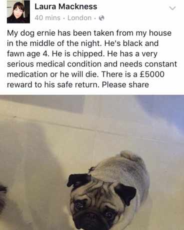 This lost Pug Dog was last seen around Hornchurch Hornchurch Essex RM12