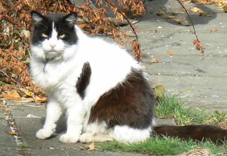 Very friendly cat, has collar on with tag with contact details on. Takes daily medication.