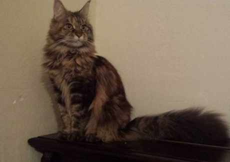 Red tortie/tabby markings. Beautiful long tail and lynx tipped ears. Missing claw on back leg.