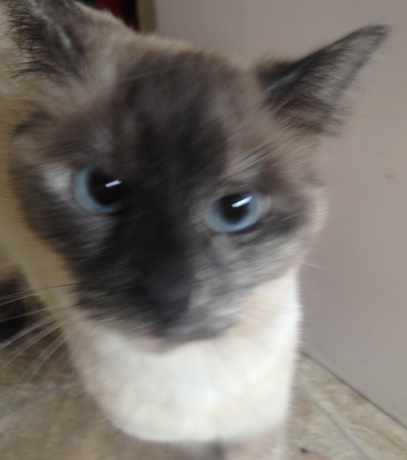 Cookie has big blue eyes and is quite fluffy, she is quite shy but she should respond to her name if called.
