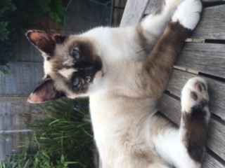 Clover is a mixed breed siamese/ragdoll . She is 7 months old. she was a rescue cat and we have had her since she was about 10 weeks old. She is very curious and is known well in our neighbourhood. She went missing Monday 12th September after 8 pm. She is an outdoor cat and is very tenacious and fearless but she knows her name and the area well now and always comes home when called or when hungry. SHE IS CHIPPED AND NEUTERED. However after initially thinking she had just wandered too far, we have also found to that 2 other birman/burmese cats have also gone missing from the area very close to our house.The local neighbourhood police in berrylands have been notified.