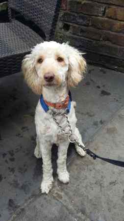 Buddy is a Cockerpoo. He is apricot coloured/ white/ ginger.