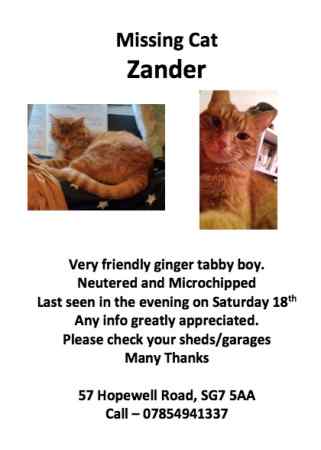 Zander hasn't been seen since Saturday 18th March evening. He is very very friendly and not easily spooked. He left the house around 8.00 and has not returned since.