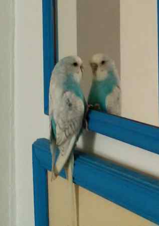 Light blue badgie. He know his name. His name is Petya. Please,check your garden or balcony. Call us if you find him or if you see him. Rewards for safe return.