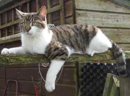 He is a medium sized cat, not over weight or skinny. He is very sociable towards people, even strangers. He is quite scared of dogs but has made friends with some other cats. He has a habit of going into peoples houses and making himself at home. He went out as usual and didn't come home that night.