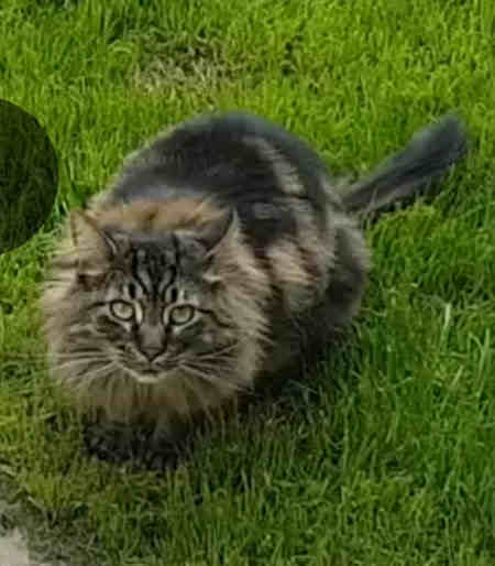 We went on holiday and had a neighbour feed our cats. When we returned on Monday the 11th the cat was not there.