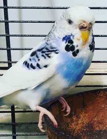 White and blue all over chirps a lot will chirp if handled and try to bite your fingers