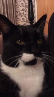Large Black cat with white bib and socks
