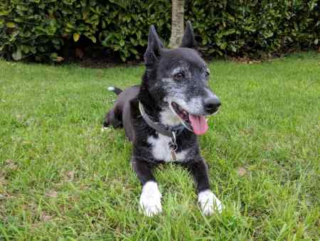 Cooper is a small Corgi- Patterdale mix. He is blalck and white and has a short-haired coat. He is quite old, but very friendly and will approach anyone.
