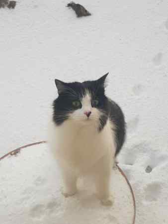 Went missing in the morning of 28 of February its white and black with white front paws and black fluffy tail medium size