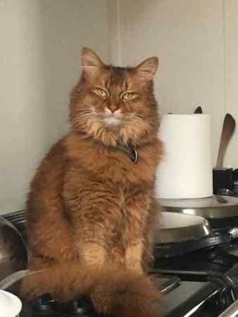 Merlin is a much loved family pet. He is a semi-long haired, neutered Somali male. His fur is a copper, golden colour and he has a very fluffy tail, like a fox. He went missing from Highbury in North London on Saturday 25th May. He was wearing a green collar with a name tag, which could have been lost or removed. He is a very friendly cat. If you have any information please contact us urgently.