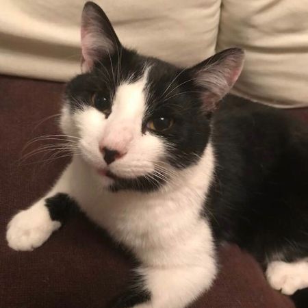 He has mid-length fur and a bushy black tail. His facial features resemble the ‘Felix’ cat trademark with a black nose. He is a curious cat but will be friendly if he feels safe.