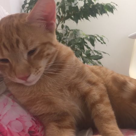 Ginger is a friendly and active cat. He likes attention. He enjoys catching shrews and birds. He goes into the fields over the road. It’s a busy road which he crosses everyday,
