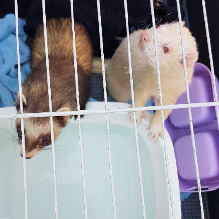 They were hand reared from kits and at 6 years old have only ever been very much loved family pets. They would not be of use to anyone looking to use them as hunting aids and completely tame.
