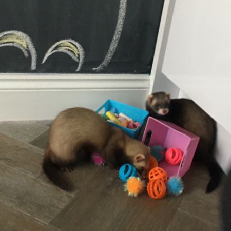 Chocolate brown ferret with light brown nose, a small size as it is only 5 months old, domesticated and very friendly.