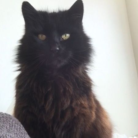 He is a domestic long hair, black but due to age is quite ginger on his backside. He is deaf but can distinguish a high pitch whistle.