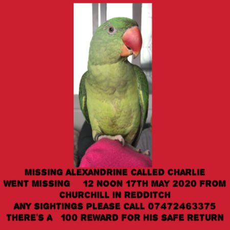 This lost Parrot, Parakeet Bird was last seen around Redditch Worcestershire B98