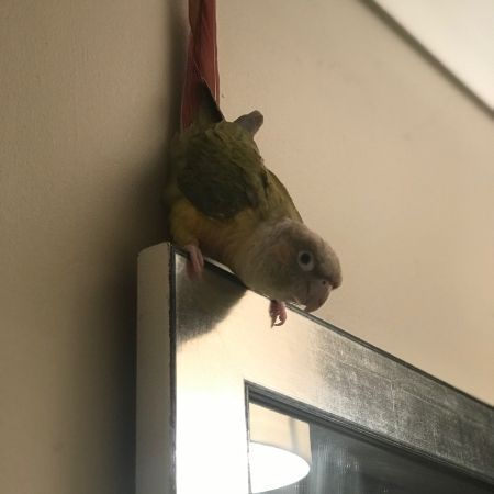 Joe flew out of our window in Cannock,Staffordshire.He is a Pineapple Conure with a ring on his leg.