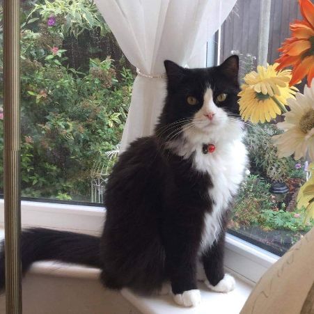 Jasper - Ragamuffin male cat. Black and white (white paws/belly and fully black bushy tail). Yellow eyes. Lost in Honeysuckle Drive, Featherstone, Wolverhampton.