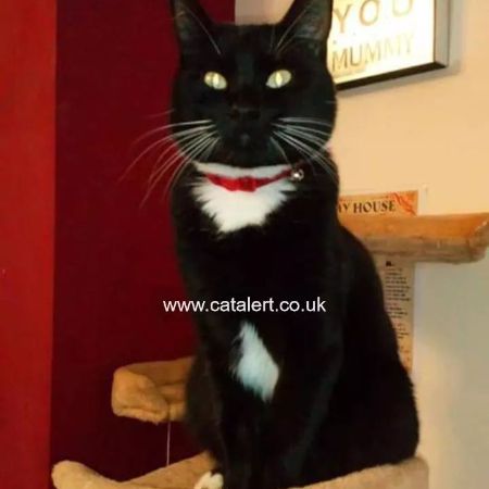 Gizmo has white socks a white patch on chest aswell. He isnt wearing a collar. He never disappears for this amount of time usually comes back when called.