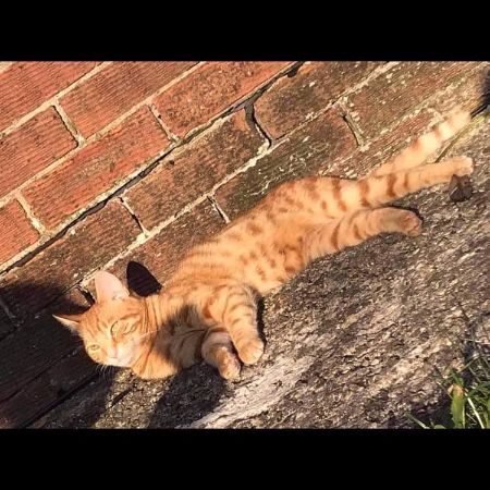 Ginger tabby Tom cat he’s all ginger a very orange colour he’s very got my M shape marking on his forehead between his eyes he’s has green eye very timid and sometimes scared of humans. He loves food he’s very approachable if you slow and patient.