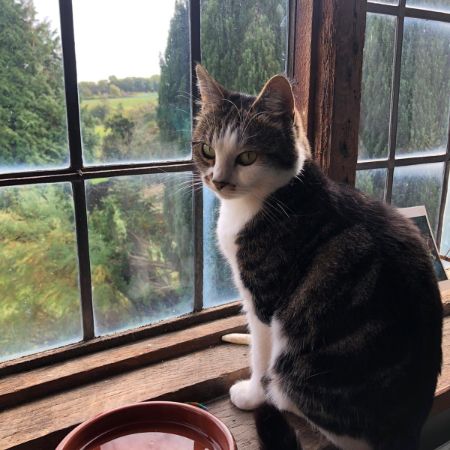 She has spotting of tabby markings on her hind shins, she has bright eyes and is beautiful and a strong meow if she’s being vocal