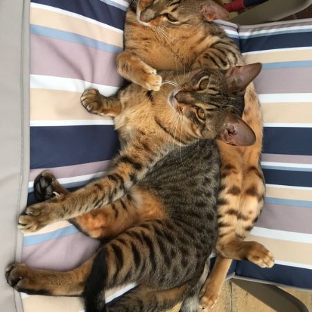 A young friendly female cat spotted & striped / black & light brown, microchipped but no collar