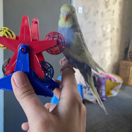 Tommy will come to you if you hold your finger out or she will land on your head and he wisels